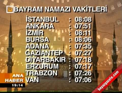 Bayram namazı saatleri