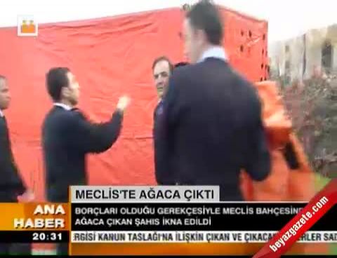 Karabük'ten gelen bir vatandaş ödeyemediği bakkal borcu nedeniyle TBMM bahçesinde ağaca çıkarak eylem yaptı.Meclis'e gelerek AK Parti İstanbul Milletvekili Hakan Şükür ile görüşmek istediğini belirten ancak görüşemeyen Murat Halvacı isimli vatandaş, Meclis bahçesindeki bir ağaca çıkarak bağırmaya başladı.