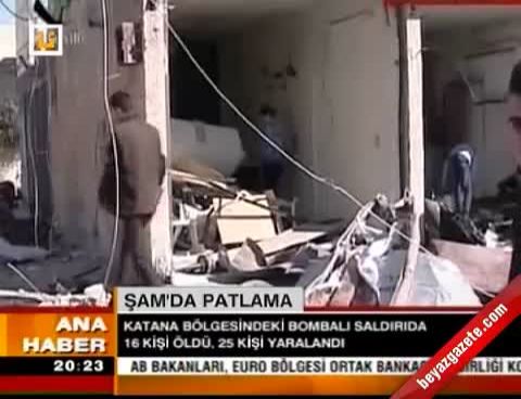 Suriye televizyonu bugün Şam'ın güneydoğusunda bulunan Katana bölgesinde bir aracın patlatıldığını duyurdu. Meydana gelen patlamada aralarında kadın ve çocukların da bulunduğu 16 kişinin öldüğü 25 kişinin yaralandığı ifade edildi.