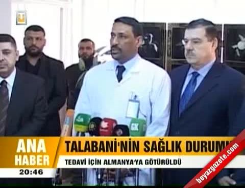 Celal Talabani'nin sağlık durumuyla ilgili dün konuşan Başbakan Erdoğan, tedavisini Türkiye'de yapabileceklerini ve bu amaçla da Türkiye'nin jet ambulans göndermeyi teklif ettiğini söylemişti. Öte yandan Almanya'dan bir sağlık ekibi Talabani'nin tedavisine yardımcı olmak üzere Bağdat'a gönderildi.