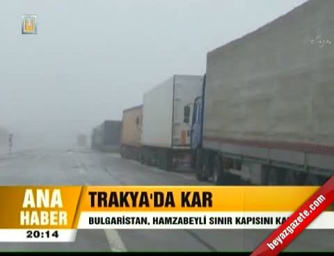 Bulgaristan sınırındaki Hamzabeyli Sınır Kapısı'nda tipi şeklindeki kar yağışı etkili oluyor. Yük taşımacılığı yapan tırların kullandığı uluslararası karayolunda yağış nedeniyle aksaklık yaşanmazken, karayolları ekipleri ulaşımın aksamaması için hazır bekletiliyor.