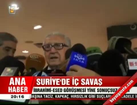 Suriye resmi haber ajansı SANA'da yer alan habere göre, İbrahimi ile başkanlık sarayında bir araya gelen Esed'in görüşmede, ''Suriye yönetimi, Suriye halkının çıkarlarına hizmet etmek ve ülkenin egemenliği ve bağımsızlığın korumak için tüm gücünü sarfediyor'' dediği belirtildi. Ancak görüşmeye ilişkin ayrıntı verilmedi.