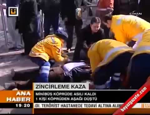 Yaralılardan adı öğrenilemeyen bir kişinin asılı kalan minibüsten düştüğü ve sağlık durumunun ağır olduğu bildirildi.