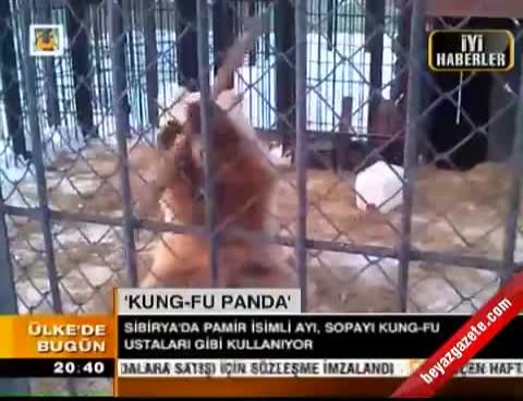 Sibirya 'nın Krasnoyarsk şehrindeki hayvanat bahçesinde ayıyı izleyen vatandaşlar, “Kung-fu Panda!” diyerek ayının sopayla yaptığı hareketlere tezahürat yaparak eşlik ediyor.