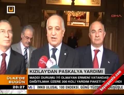 Kızılay Genel Başkanı Ahmet Lütfi Akar, Patrik Vekili Aram Ateşyan ile basına kapalı görüşme yaptı. Ateşyan’ın bayramını tebrik eden Akar, daha sonra gazetecilere açıklama yaptı. Kızılay’ın din, dil, ırk ayrımı yapmadan yardım çalışmalarına devam ettiğini belirten Akar, “Paskalya Bayramı dolayısıyla patriğe kutlama ziyaretinde bulunduk. Hristiyanların Paskalya Bayramı’nı tebrik ediyorum. Buradaki insanlarımız hangi dinden olursa olsun bizim kardeşlerimizdir. Kardeş olarak elimizden gelen yardımı yapmaktan geri kalkamayız. Bugünkü yardımımız bayram dolayısıyladır. Burada 200 koli yardım malzemesi bulunmaktadır.” diye konuştu.