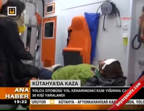 Kütahya'da yolcu otobüsünün kum yığınına çarpması sonucu 29 kişi yaralandı.