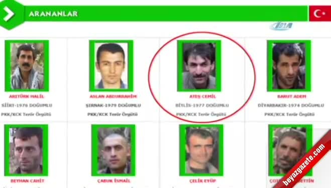 Bölücü terör örgütünün Sözde Garzan Eyaleti tepe yönetiminde yer alan, yeşil listeyle aranan ve başına 1 milyon TL ödül konulmuş bulunan Hemgin Koçer kod isimli terörist Cemil Ateş M-16 silahı ve Kandille irtibatta kullandığı büyük telsiziyle birlikte ölü olarak ele geçirildi. Terör OperasyonuPkk Terör Örgütü