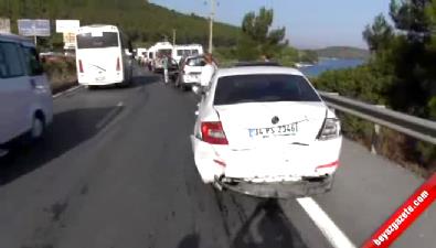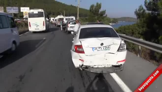Muğla'nın Bodrum ilçesinde, 20 aracın karıştığı zincirleme trafik kazasında 5 kişi yaralandı.