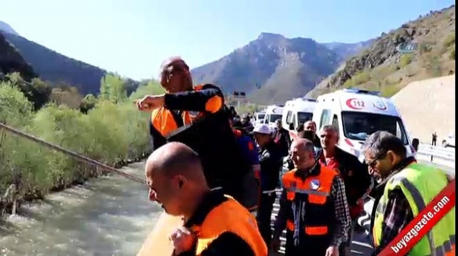 Çaya düşen otomobilde yardım bekleyen 3 kişi, AFAD ekiplerince kurtarıldı.