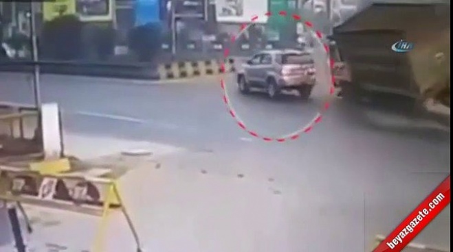 Dehşet veren görüntülerin adresi Hindistan. Kavşaktan dönüş yapmak isteyen aracın sürücüsü, yayaya çarpmamak için yavaşladı.