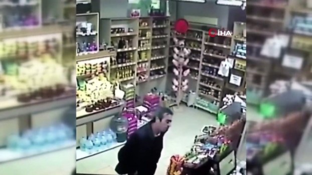 Markette kadını taciz ettiği iddia edilen adama kick bokscudan yumruk kamerada