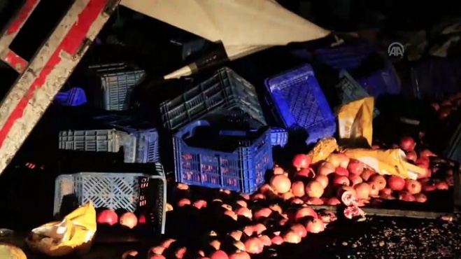 Antalya'da nar yüklü kamyonun devrilmesi sonucu 3 kişi hayatını kaybetti.