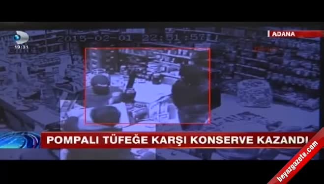 Pompalı tüfekli gaspçılara konserve kutusuyla karşı koydu