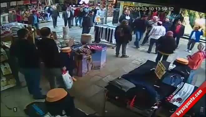 İzmir ' de seyyar satıcılık yapan şahıs, peşinden koşup yakaladığı Suriyeli çocuğu havaya kaldırıp acımasızca yere vurdu.