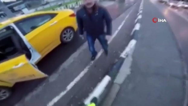 Ticari taksi sürücüsü de kendisine tepki göstererek üzerine yürüyen motosiklet sürücüsüne bıçak çekti. Taksi sürücüsünün bıçakla motosiklet sürücüsünün üzerine yürümesi kask kamerasına yansıdı. İstanbul Çekmeköy ' de Nevzat Demir Tesisleri'nin bulunduğu mevkide seyir halinde olan motosiklet sürücüsü ile taksi sürücüsü arasında tartışma yaşandı. Tartışma sonrası motosiklet sürücüsü aracından inerek ticari taksi sürücüsünün üzerine yürüdü. Bu esnada ticari taksi sürücüsü de motosikletli sürücüye bıçak çekti. Bunun üzerine motosiklet sürücüsü tekrardan motoruna binerek olay yerinden uzaklaştı. Taksi sürücüsünün bıçakla motosiklet sürücüsünün üzerine yürümesi kask kamerasına yansıdı.
