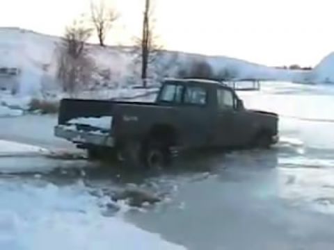 buzla kaplı gölete girmeye çalışırken buzlar kırıldı