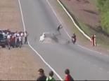 motosikletçiler yarışırken bir araba ortalığı karıoştırıyor