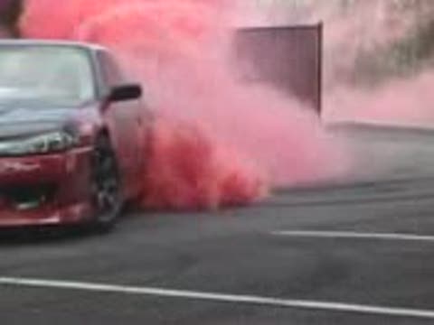 nissan skyline lastik yakarken kırmızı duman çıkarıyor