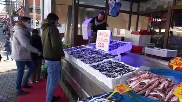 2 günlük hafta sonu kısıtlaması öncesi hamsi tezgahlarına akın ettiler