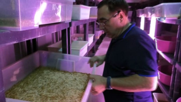 ( ANTALYA - ÖZEL - HD)- Antalya’da bir girişimci, insanların bakmaktan bile tedirgin olduğu un kurdunun (Tenebrio Molitor) üretimini yapıyor- Her türlü etçil ve kanatlı hayvanlarda canlı yem olarak kullanılan ve içinde yaklaşık 10 bin adet bulunan un kurdunun kilosu 90 liradan alıcı bulurken, firma kısa süre içinde Avrupa pazarına açılmayı planlıyor ANTALYA