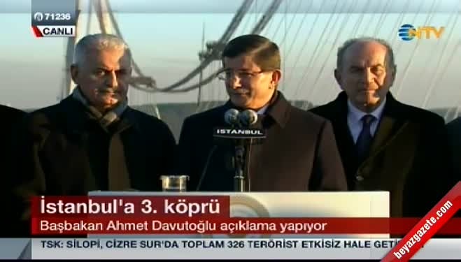 Başbakan Davutoğlu, 'Şu ana kadar projenin yüzde 88'i gerçekleşti. Bağlantı yollarıyla köprünün birlikte bu yaz içinde açılmasına, inşallah olağanüstü bir durum söz konusu olmazsa, karar verdik. Dolayısıyla köprü ve bağlantı yollarını birlikte, inşallah bu yaz içinde mümkün olan en erken vakitte İstanbulumuza ve ülkemize kazandırmış olacağız' dedi.