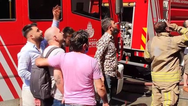 6 katlı binanın bodrum katında yangın çıktı, ailesini kurtarmak için binaya girmeye çalışan gence itfaiye ekipleri engel oldu