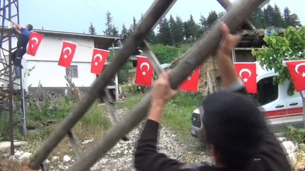 -Şehidin baba evine Türk Bayraklarının asılması