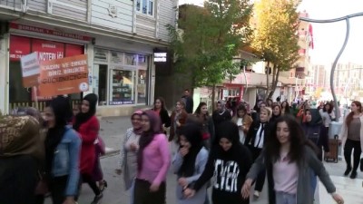 Parti binası önünde toplanan partililer, Sanat Sokağı'na kadar yürüdü.AK Parti İl Kadın Kolları Başkanı Hatice Atan, burada yaptığı konuşmada, kadına yönelik şiddetin dünyanın her yerinde görüldüğünü söyledi.