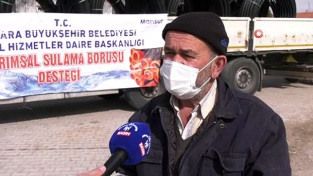 - Barajlar ile sulama göletlerinde doluluk oranlarının ve su debisinin azalması nedeniyle tarlalarını sulayamayan çiftçiler için Ankara Büyükşehir Belediyesi, 6 ilçeye bağlı 12 kırsal mahalledeki üreticilere yaklaşık 40 bin metre tarımsal sulama borusu dağıttı.