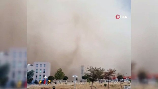 Görüş mesafesi toz bulutu nedinyle düşerken, etkili olan rüzgarın, ağaçları salladığı da kameralara yansıdı. (AS-