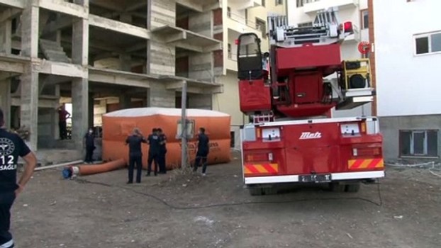-polis ekiplerinin inşaatın 6.’ncı katına çıkan vatandaşı aşağı indirmesi