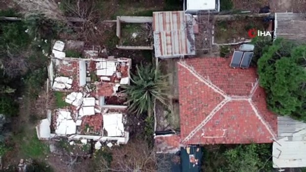 ( ANTALYA - ÖZEL - DRONE)- Seneler önce yumuşak zemine yapılan gecekondular zamanla yan yatmaya başlayınca vatandaşların korkulu rüyası haline geldi- Tehlikeyi fark edenler evlerini terk ederken, birçok gecekonduda yaşam devam ediyor- Kızıltoprak Mahalle Muhtarı Mustafa Yılmaz:- “Bu evler, 4-5 büyüklüğünde deprem olursa yıkılır”- Evlerde yaşayan vatandaşlar:- “Gök gürlediğinde boşluğa gidiyor gibi oluyordum. Yatmak ve kalkmak zor oluyor, kafam dönüyor”- “7-8 kez tadilat yaptım demirle, halatla bağladım ama ne yaptıysam tutamadım” ANTALYA