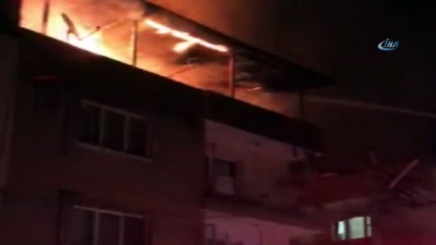 Apartmanın çatı katı alev alev yandı