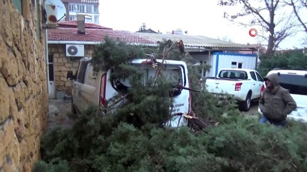 Ayvacık’ta şiddetli rüzgar ağaç devirdi