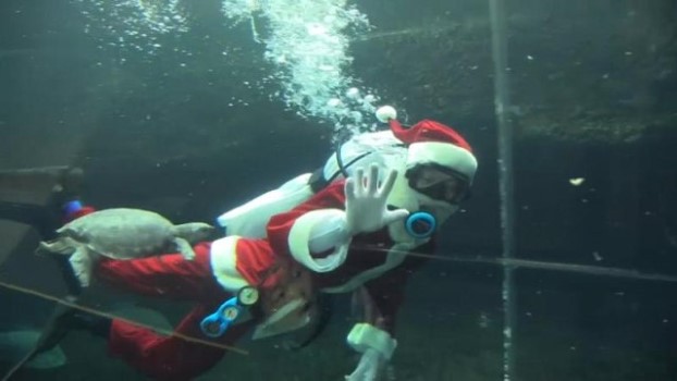 Bacadan beklenen Noel Baba akvaryumda görüldü