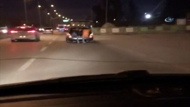 - Adana’da seyir halindeki bir otomobilin bagajında yolculuk eden 2 kişi görenleri şaşkına çevirdi. D-400 Karayolu’nda çekilen görüntülerde bagajda iki kişinin ayaklarını sarkıtarak ölüme meydan okurcasına yolculuk yapmaları dikkat çekti. O anlar cep telefonunu tarafından saniye saniye kayıt altına alındı.