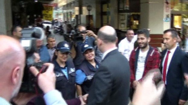 - Aydın’da düzenlediği 'Seçim Güvenliği' toplantısının ardından çarşı esnafına ziyaret eden İçişleri Bakanı Süleyman Soylu, yoğun ilgi gördü. Bakan Soylu'yu karşılarında gören vatandaşlar bakanla fotoğraf çektirmek için sıraya girdiler. İçişleri Bakanı Süleyman Soylu; Aydın, Burdur, Isparta, Afyonkarahisar, Balıkesir, Denizli, İzmir, Manisa, Muğla, Kütahya ve Uşak illerinin valileri ile Aydın'da 'Seçim Bölge Güvenlik Toplantısı'nda bir araya geldi. Toplantı sonrası Aydın Efeler ilçesi Hasanefendi Mahallesi Sevgi Yolu’nda esnafları ziyaret eden Bakan Soylu, burada vatandaşların yoğun ilgisi ile karşılaştı. Aydınlılar Süleyman Soylu ile fotoğraf çektirmek için birbiriyle yarıştı. Bakan Soylu fotoğraf çektirmek isteyen tüm vatandaşların isteğini geri çevirmedi. Ziyaret esnasında erkek çocuklara polis arabası, kız çocuklarına bebek hediye eden Bakan Soylu, son olarak Aydın’da görev yapan polis memurları ile de sohbet ederek hal ve hatırlarını sordu. Bakan Soylu, Aydın'daki esnaf ziyaretinin ardından Aydın’dan ayrıldı.