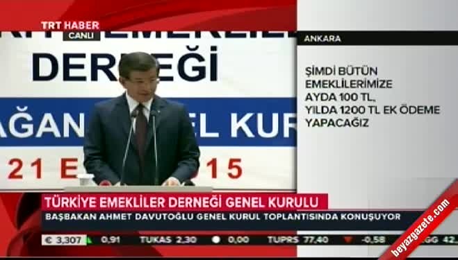 Bütün emeklilierimizin hepsine ayda 100 lira yani yılda 1200 lira ek ödeme yapacağız. İnşallah seçim sonrasında ilk yapacağımız işlerden biri bu olacak.