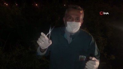Boş ayran kutusunu kirpinin başından çıkartan Veteriner Şerif Ali Karanfil, daha sonra kirpiyi doğal hayatına saldı. (EB-ALI-