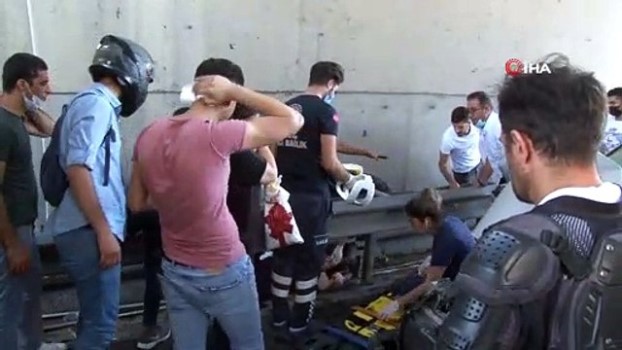 Bu sırada çarpmanın etkisiyle minibüsün açılan kapısından kucağında 1,5 yaşında çocuğu olan H.N. isimli bir kadın yola fırladı. Bariyerlerin arasına düşen kadın ağır yaralanırken, olay sırasında minibüs içerisinde düşen minik çocuk ise yara almadı. Kazayı gören vatandaşlar durumu hemen polis ve sağlık ekiplerine bildirdi. Minibüs içerisinde bulunan ve kazayı hafif sıyrıklarla atlatan diğer vatandaşlar hemen bariyerlerin arasına düşen kadının ve çocuğun yardımına koştu. Vatandaşlar kadına yardım ederken olay yerinde bulunan bir kadın ise korkan ve ağlayan çocuğu sakinleştirmek için büyük çaba sarf etti. Talihsiz kadın ve çocuğu ilk müdahalesi olay yerine gelen sağlık ekipleri tarafından yapıldıktan sonra ambulans ile hastaneye kaldırıldı. Yolcuyu indirdikten sonra kapıları kapattığını ve kazanın yaşandığını belirten minibüs şoförü ise “Kapı açık değildi yolcu indirdim bayan buradan düştü. Baksanıza minibüs ne hale geldi. paralar savruldu aracın haline bakın” diye konuştu.