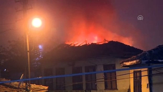- Yangın çıkan bina - Yükselen alevler - İtfaiye ekiplerinin çalışması - Yangına müdahale etmeleriBaşkentte iki katlı binada çıkan yangın hasara neden oldu - Ulus İtfaiye Meydanı'nda çıkan yangın itfaiye ekiplerinin 2 saat süren müdahalesiyle söndürüldüANKARA (AA) - Ankara 'nın Altındağ ilçesinde iki katlı binada çıkan yangın paniğe neden oldu.İkinci el eşya satan çok sayıda iş yerinin bulunduğu Ulus İtfaiye Meydanı'nda alt katı iş yeri üst katı ise depo olarak kullanılan iki katlı bir binada henüz belirlenemeyen nedenle yangın çıktı.Bölgeye çok sayıda itfaiye ekibi sevk edildi.Bu sırada olay yerine gelen polis ekipleri binanın bulunduğu Yapıncak Sokak'taki eski ahşap evlerde oturanları tahliye etmek için çalışma başlattı.Yanan binanın bitişiğindeki bir binada oturanların olduğunu tespit eden ekipler içeride bulunan 2'si çocuk 6 kişiyi uyandırarak dışarı çıkardı.Yoğun duman altında yangına müdahale eden itfaiye ekipleri yaklaşık 2 saat süren çalışmanın altından alevleri kontrol altına alarak söndürdü.Araç girişinin olmadığı sokakta güçlükle çalışan ekipler merdiven yardımıyla binanın ikinci katındaki pencereden girerek içeride kimsenin olup olmadığını araştırdı.Yangın nedeniyle İtfaiye Meydanı'na çıkan Adnan Saygun Caddesi'nin bir bölümü çift şeritli olarak ulaşıma kapanırken trafik akışı çevredeki ara sokaklardan sağlandı.Yangın sonrası binada büyük çapta hasar meydana gelirken yangının çıkış nedeninin belirlenmesi için çalışma başlatıldı. PolisAhşap EvPolis EkipleriYangına MüdahaleTrol