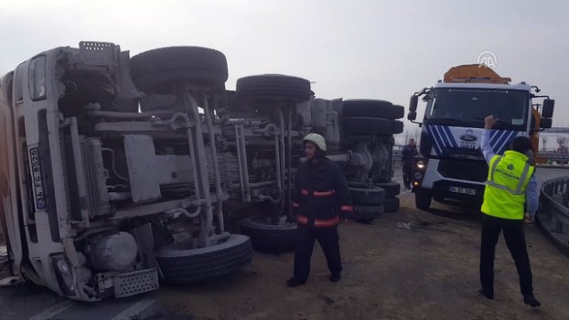 - Olay yerinden görüntüler - Yanan araçtan detaylar Bakırköy'de beton mikseri devrildi: 1 yaralı - Bakırköy'de virajı alamayarak devrilen beton mikserinin sürücüsü yaralandı.İSTANBUL (AA) - Bakırköy'de virajı alamayarak devrilen beton mikserinin sürücüsü yaralandı.Alınan bilgiye göre, Remezan Közgün (28) kullandığı 34 FG 8526 plakalı beton mikserinin hakimiyetini kaybederek, Kennedy Caddesi'nden Bakırköy Veliefendi Hipodromu istikametine giderken Taşhan Köprüsü'nde virajı alamayarak devrildi.İhbar üzerine olay yerine sağlık, itfaiye ve polis ekipleri sevk edildi.İtfaiye ekipleri araçta sıkışan sürücü Közgün'ü araçtan çıkararak sağlık ekiplerine teslim etti.Sağlık ekiplerinin ilk müdahalesinin ardından Közgün, Dr. Sadi Konuk Eğitim ve Araştırma Hastanesi'ne kaldırıldı.Mikserin devrilerek yan yatması sonucu araçta bir miktar harç ve mazot da etrafa yayıldı.Devrilen mikser nedeniyle tek yönlü trafiğe kapatılan köprünün, vinç yardımıyla kaldırılmasının ardından açılacağı öğrenildi. Kırköyİlk MüdahaleBeton MikseriPolis EkipleriSağlık Ekipleri
