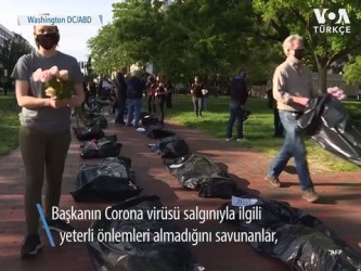 Başkent Washington’da çok sayıda kişi Beyaz Saray önünde, Başkan Trump’ı protesto etti. Başkanın Corona virüsü salgınıyla ilgili yeterli önlemleri almadığını savunanlar, Beyaz Saray önündeki Lafayette Parkı’na çok sayıda ceset torbası serdi