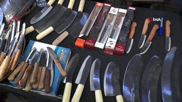 - Kurban Bayramı’nın yaklaşmasıyla bıçakçılarda bileme yoğunluğu yaşanıyor. Ustalar tarafından özenle bilenen bıçaklar, bayrama hazırlanıyor. Gaziantep Bakırcılar Çarşısı’nda hizmet veren bıçakçılarda bileme yoğunluğu yaşanıyor. Kurban Bayramı’nın yaklaşmasıyla kurban kesecekler, soluğu bıçakçılarda alıyor. Kurban kesiminde kullanacakları aletleri biletmek isteyen vatandaşlar, bıçak ve satırlarını ustalara emanet ediyor. Sıraya alınan bıçak ve satırlar, ustalar tarafından bıçak bileme aletlerinde özenle bilenerek kurbana hazırlanıyor. Çarşıdaki bıçakçılarda günde 5 bine yakın bıçak ve satır bilenirken, bıçakçılar Kurban Bayramı öncesinde yoğun mesai yapıyor. “Bıçak bileme işlerini son günlere bırakmasınlar” Bakırcılar Çarşısı'ndaki bıçak ustası Cuma Alaca, bıçaklarını biletmek isteyenlere uyarılarda bulundu. Kurban keseceklerin bıçak bileme işlerini bayram öncesi son günlere bırakmaması gerektiğini belirten Alaca, “Biz Türk vatandaşları olarak işlerimizi mutlaka son günlere bırakırız. Bayram yaklaşıyor, bileme işlerini vatandaşlarımız son günlere bırakmasın. 1970 yılından bu yana bıçak işiyle uğraşıyorum. Kurban Bayramı öncesinde işlerimiz yoğun olur. Biz iş yerimizde günde bine yakın bıçak biliyoruz. Bileme fiyatları bıçaklarda 3 lira satırları da 7 buçuk liraya yapıyoruz. Kurbanı keserken de bıçağın keskin olması lazım. Hayvana eziyet çektirmemek için bıçakların keskin olması için biz elimizden geleni yapıyoruz” dedi.