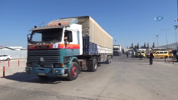 ( KİLİS )- Birleşmiş Milletler tarafından 6 tırlık yardım konvoyu Öncüpınar Sınır Kapısı üzerinden Suriye’ye geçiş yaptı KİLİS