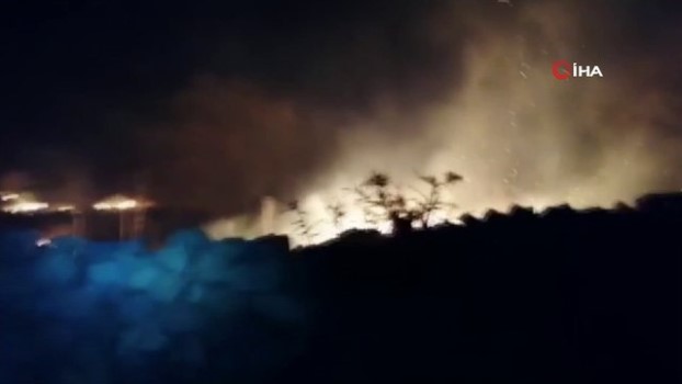 ( MUĞLA )-Bodrum ilçesinde gece saatlerinde çıkan otluk ve ağaçlık alandaki yangın itfaiye ekiplerinin müdahalesi ile söndürülürken 12 dönüm alan yandı MUĞLA