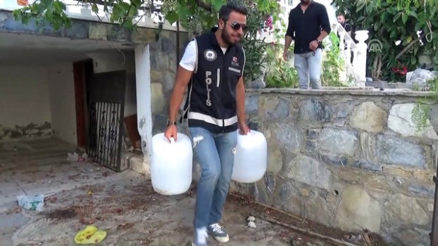 Operasyonda, evin alt katındaki depo kısmında dolum için hazırlanmış 20 kiloluk 50 bidon sahte içki ele geçirdi.Polis ekipleri evde yaptıkları aramada, dolum için hazırlanan farklı boylarda içki şişeleri ile bin 710 sahte bandrol ve içki yapımında kullanılan bazı malzemelere de el koydu, M.G, E.N.H. ve E.A'yı gözaltına aldı.Operasyon anı kamerayla kaydedildi.