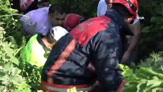 ( BOLU )- Otomobiliyle uçurumdan yuvarlanan sürücü halat yardımıyla kurtarıldı BOLU