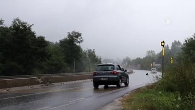 - D - 100 kara yolunun Bolu Dağı geçişinden görüntülerDÜZCE (AA) - D - 100 kara yolunun Bolu Dağı geçişinde sağanak ve sis etkili oluyor.D - 100 kara yolunun Düzce kesiminde Karanlıkdere, Bakacak, Elmalık mevkileri ile Anadolu Otoyolu'nun tünel çıkışı ve viyadükler bölgesinde sis nedeniyle görüş mesafesi yer yer 15 metreye kadar düştü.Sabah saatlerinden itibaren etkili olan sağanak nedeniyle de sürücüler zaman zaman yolda güçlükle ilerliyor.Bölgede ring halinde görev yapan emniyet ekipleri, sürücüleri yakın takip ve aşırı hız yapmamaları konusunda uyarıyor.Kara yolları ekipleri de bölgede çalışmalarını sürdürüyor. GesiYakın TakipAşırı Hız
