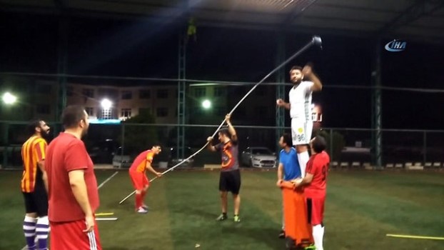 - Osmaniye’de bir halı sahada iki arkadaş grubunun oynadığı futbol maçında top tavan filesinde asılı kaldı. Topu fileden kurtarmak için süpürge saplarını birleştirip uzatan,çöp kovalarını üst üste koyup yükselti yapmaya çalışan, arkadaşlarını omuza alıp o şekilde topu indirmeye çalışan futbolcuların bu mücadelesi ilginç görüntüler ortaya çıkardı. Osmaniye’de bir halı sahada iki arkadaş grubu maç yapmak için karşı karşıya geldi. Bir ara futbol topu halı sahanın tavanında bulunan fileye düşerek orada sıkıştı. Maça yedek topla devam eden futbolcuların çektiği şutla yedek topta aynı şekilde fileye sıkışınca topu fileden indirmek için mücadele başladı.